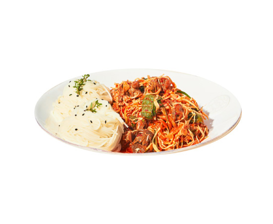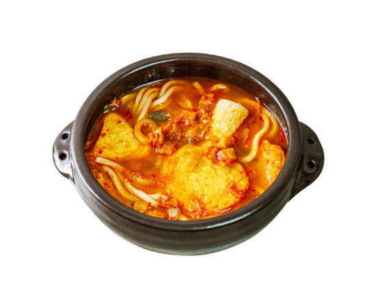 매콤한 김치국물에 쫄깃한 우동면이 어우러진
