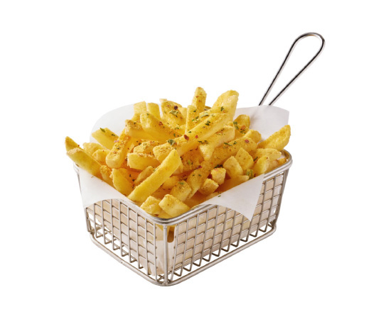 깊은 감칠맛의 향긋한 커리시즈닝이 뿌려진 감자튀김